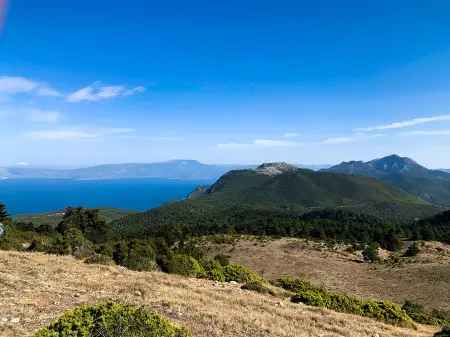 ✅ Θέα προς τον Ισθμό της Κορίνθου και τα βουνά της Πελοποννήσου